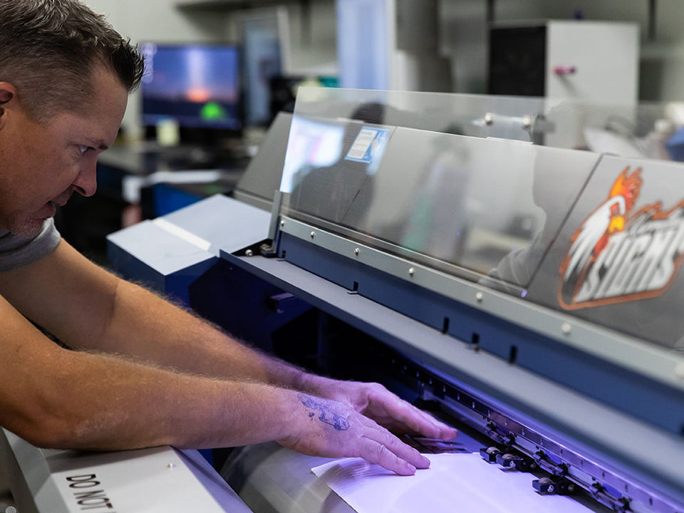 Jed não hesitaria em recomendar produtos Roland DG dizendo “Isso se deve à confiabilidade de suas impressoras e ao grande apoio que tivemos da Graphic Art Mart”.
